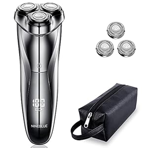 Electric Shaver, Rechargeable Men’s Rotary Razor with Pop-up Sideburn Trimmer, Leather Bag and LCD Power Indicator, Fast…