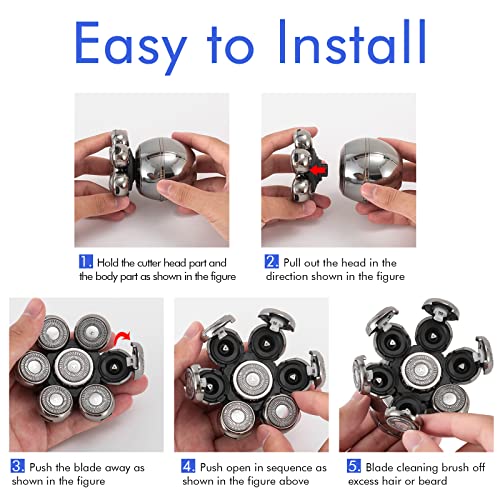 【7 Flexible Shaver Heads】- Upgraded 7-blade design increases shaving area and saves shaving time. 5D precise & sharp rotary blade heads fit the facial contour and ensure shaving more hair with every pass, resulting in smooth and close shaving. A good choice for men’s bald head shaving.