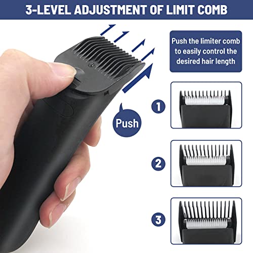 [How to Use]- Please charge the ball shaver fully before first use. Red and flashing lights indicate low battery, blue light indicates fully charged. 2 second hold to turn on and a tap to turn off. the LED light is on, get close to the skin and push the grooming clipper slowly and steadily against the direction of hair flow. Adjustable guide combs (3/7/11mm) help you customize the shaving effect for your balls, groin, chest, underarms, back, legs, etc. in minutes