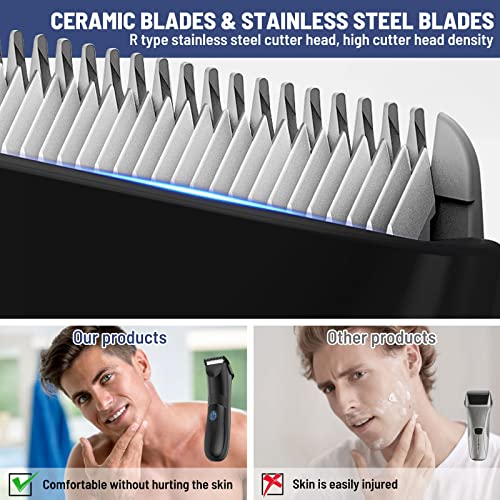 [Great Hand-Feel and Lightweight]- This ball trimmer for men is simple and sleek in design, ergonomic, hand-feel, lightweight and easy to use, making it the perfect companion for travel and business trips. The WISEHILL pubic hair trimmer is made with a rust-resistant advanced ceramic blade that is more hygienic and safe which makes it ideal for more sensitive and delicate areas