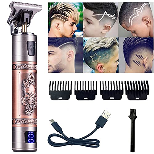 【Led display & Cool Design 】T outline clippers with smart Led display reminds you to charge the hair cutter in time. 3D skull carving design makes the trimmer looks very cool and Have a good collection value.
