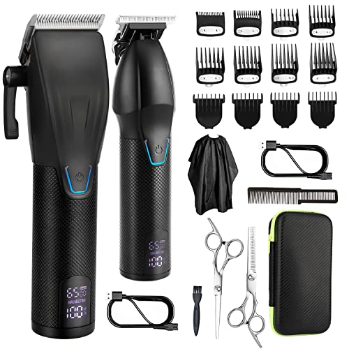 【Professional Hair Clippers Kit 】The Dumite Professional Haircutting Kit features a hair clipper with 8 metal guide combs for Smooth, Easy Haircuts, a detailed hair trimmer with sharpening T-Blade for Edging Beards, Mustaches, Hair, Stubble. Scissors,Barber Case,cleaning brush, cape, barber comb, and USB chargers are included.