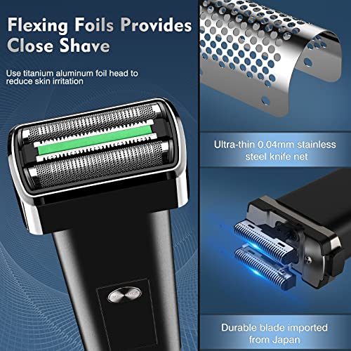 【Cut Close & Very Thorough】-Two independent reciprocating sharp stainless steel blades with polygonal foil net to capture more beard and increase the shaving area, easy to use and save time. This allows you to get a close cut and very thorough shave every time even a quick shave is not an issue.