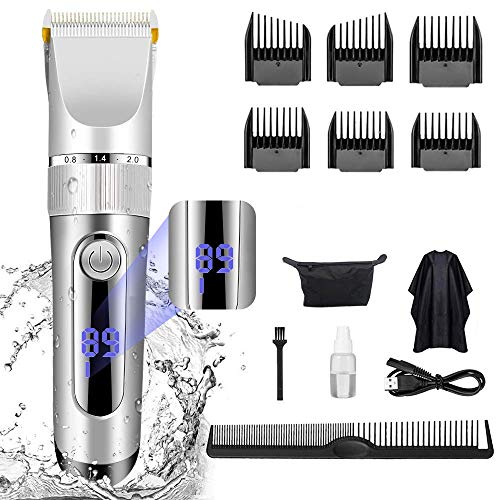 ✂Fast Charging and Durable Using: After one time full charge, this hair cutting kit lasts for 180 minutes cordless running while supports corded mode. LCD screen shows the remaining battery power, which spares you with the worry about running out of power.