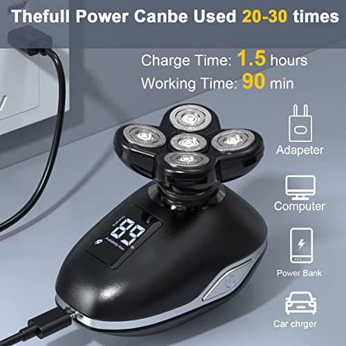đ§ăUSB Fast Charging and LCD Displayă USB fast charging 1.5 hours, enjoy 90 minutes of shaving. Electric Shaver for Bald Men with Smart LCD Display can display usage time.
