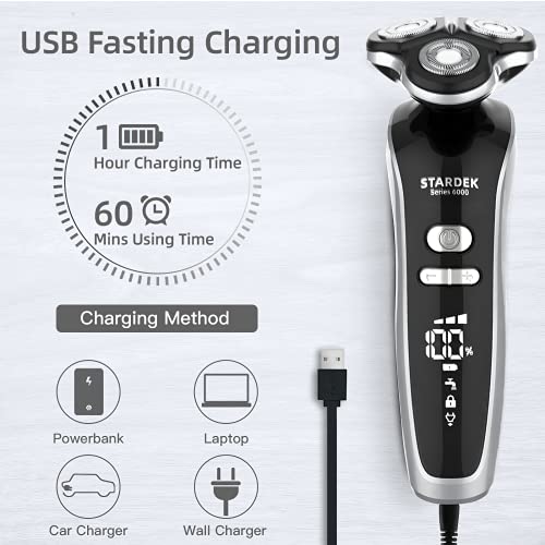 💧【USB Charging and LCD Display】This electric razor for man supports corded and cordless shaving. USB quick charge for 1 hour, you can enjoy 60 minutes of cordless shaving. LCD display shows the available time and charging status, easy to know, and control shaving and charging time.