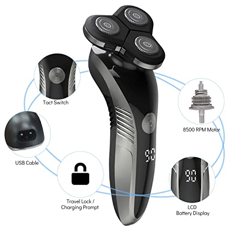 ❤LCD Display – The LCD indicator reminds you to look into the electric razor’s status at any point in time when the battery needs to be recharged and the shaver needs to be rinsed..The child lock indicator will light up when it is locked for safety.