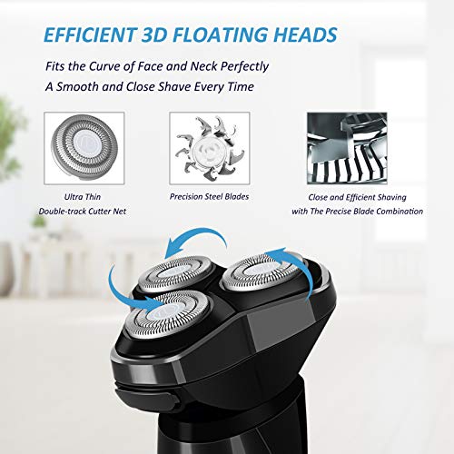 ✔ A Smooth and Close Shave – The High-performance 3D floating cutter heads with double-track ultra thin cutter net and self-sharpening steel blade design, automatically follows the contours of your face and neck to effectively shave both of longer beard and short stubble, gives you a comfortable and close shaving experience at any time.