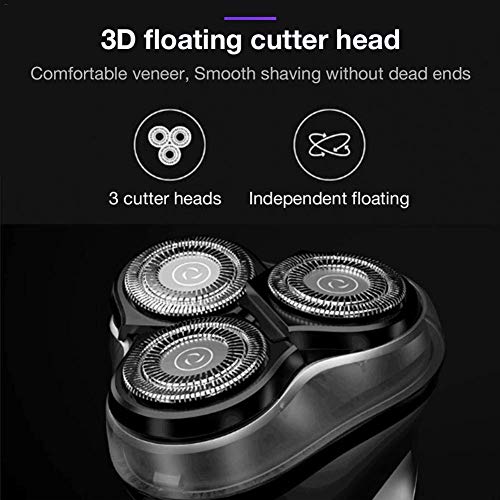【3D Independent Floating Cutter Head】This razor has three sets of independently floating cutter heads, which add 1/3 shaving area than the ordinary double cutter razor. The cutter head has a smooth touch and elastic veneer to adapt to different face contours.