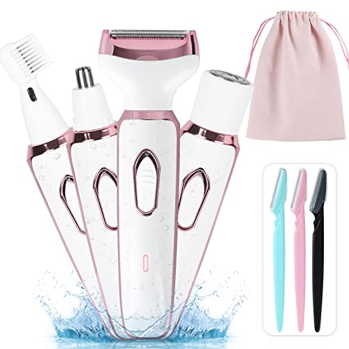 【4 In 1 & 3 Eyebrow Razor】: Electric shaver for woman, 4-in-1 design can be used for facial shaving, arms, legs, armpits, bikini & nose hair trimmer. Multi-function hair trimmer, including 4 heads: Lady Trimmer, Eyebrow Trimmer, Nose Trimmer, Bread Trimmer & Body Shaver. We also equipped with 3 eyebrow trimmer, helping to modify more exquisite eyebrows.