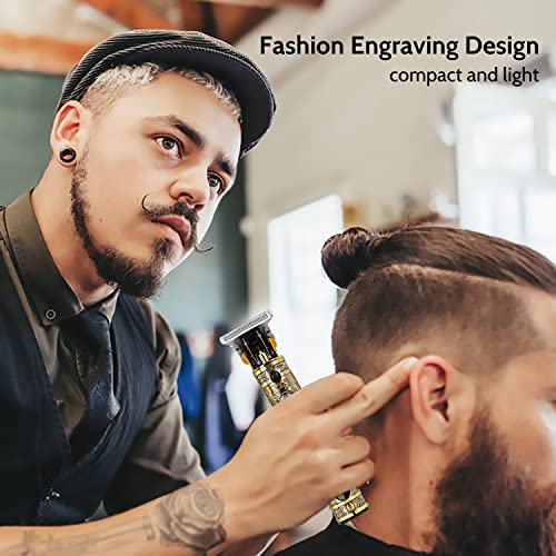 ✂【Super Sharp T-Blade】: Hair trimmer is equipped with a self-sharpening precision stainless steel blade, which is automatically sharpened, waterproof, and easy to remove. T-shaped clipper allow you to easily design your hairstyle and shape the edges. Even if you trim the thickest hair, it will not pull any hair. The R-shaped obtuse edge design makes gentle contact with the skin and will not harm your skin.