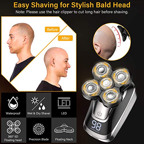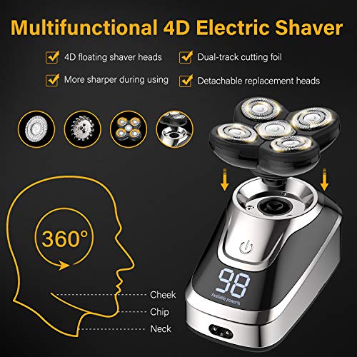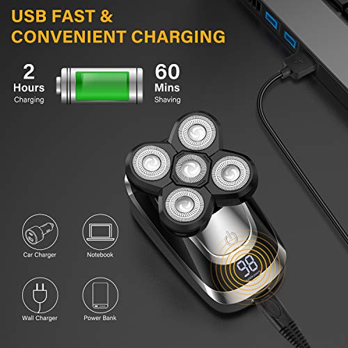 【4D Floating Shaving Head for Close Shave】- With the 4D precise & sharp rotary blades, the rotary shaver adapts to the contour of your face, neck, and jaw. Reach every hair follicle for a closer and smoother shaving in a few minutes. It’s a good choice for men’s bald head shaving, for better bald look, please first use the hair clipper to trim the hair to less than 5 mm.