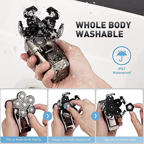 【EASY to CLEAN】 With IPX7 waterproof, the whole body of this head shavers for bald men is washable, you can directly wash this shavers for bald heads with water.you can spin the cutter head with signed direction to clean shaving heads easily and efficiently.