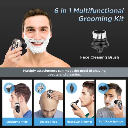【IDEAL GIFT FOR MEN】 This man’s rotary shaving kit is a perfect gift for your father, husband, boyfriend, and fiancé, especially on special day. The electric razors for men cordless rechargeable includes a six-head shaver head, 3* cutting limit combs, 1* nose hair trimmer, 1* USB cable, 1* facial cleansing brush and 1* facial massage brush, plus extra 1* Beard Trimmer.