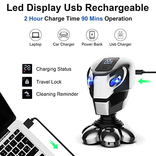 ➤【USB Fast Charging & LED Display】: Head shaver built-in large-capacity lithium battery, shavers for men electric razor chargeable just charge 2 hours to enjoy 90 minutes of shaving time, intelligent LED display shows the power, low battery, and cleaning tips status, our shavers for bald heads ​device highlights a smart travel lock design to prevent accidental powering when traveling. Long press 3 seconds to lock the razor.