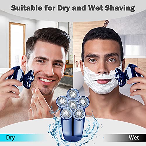 Professional Electric Shavers for Men – 6 in 1 multufulctional head shaver for men has razor head, hair clippers ( 3mm / 5mm / 7mm ), nose hair trimmer, facial cleaning brush, massage brush and manual shaver; The electric razor grooming kit is so powerful that it can help us meet all our daily needs.