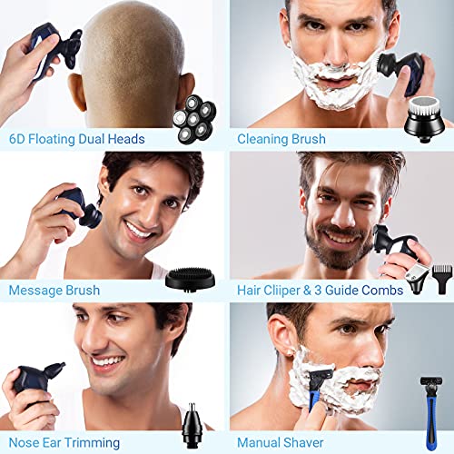 Head Shavers for Bald Men, Electric Rotary Razor 6-in-1 Beard Trimmer Grooming Kit Shockproof Floating Razor with Manual…