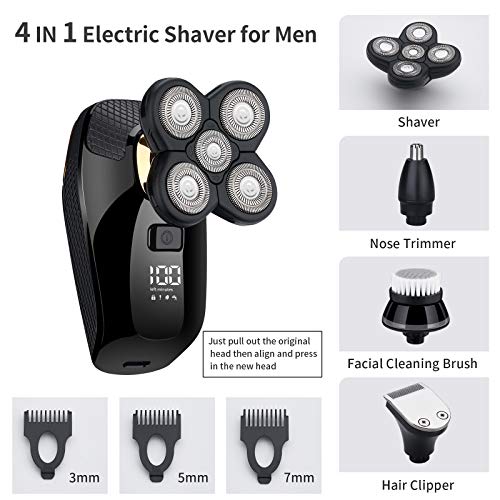 ·【4-IN-1 Eelctric Shaver Razor & Trimmer Sets】- Multifunctional detachable groomer sets include 4 attachments. Shaver head can be used for mens bald head or women leg shaving. Facial cleansing brush is for facial clean. Nose & ear hair trimmer for nose/Ear hair removal. hair trimming with 3 trimming guards for different hair & beard.