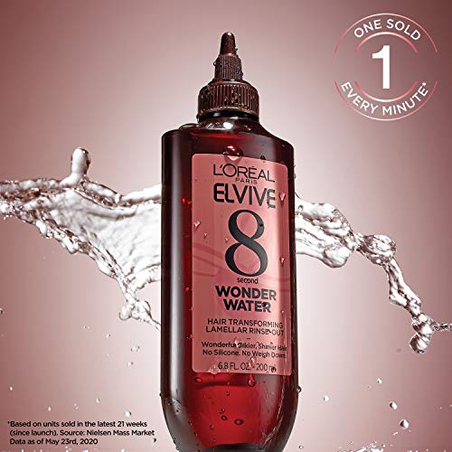 Silicone-free and paraben-free Elvive 8 Second Wonder Water, Moisturizing agents and amino acid target damaged areas of hair, forming thin layers called lamellas to smooth hair’s surface with no weigh-down