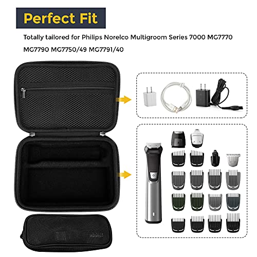 Travel carrying case for Philips Norelco Multigroom Series 7000 MG7750/49 MG7770 MG7790 MG7791/40 electric trimmer shaver and attachments (Case Only, the shaver and accessories are NOT included)