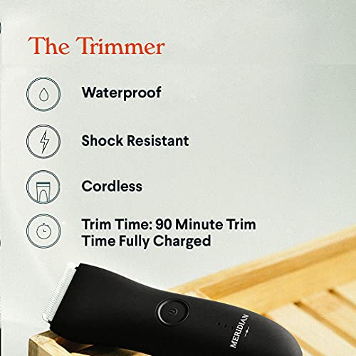 The Complete Package features the essentials for grooming below-the-belt. We designed our trimmer to give you the best trimming experience, without the stress. It’s sensitive down there! Made with precision-grade shaving technology, paired with replaceable ceramic blades – it’s your junk’s new best friend. Stop worrying about irritation, nicks, snags, and cuts. The Meridian Trimmer will quickly become a staple in your self-care routine to ensure your private parts stay safe from nicks, clean from dirt, and free from smells.