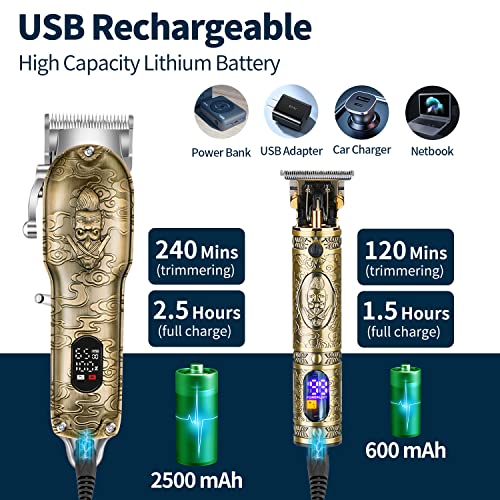 Intelligent Digital Display & High Capacity Battery: LCD digital display, not only shows the charging status, but also remaining battery percentage, speed, fuel quantity reminder, and charging reminder. The large hair clipper has a large 2500mAh Li-ion battery, which can be used for 240 minutes after 2.5 hours of charging. The battery capacity of the small trimmer is 600mAh, and hair cuts can be charged for 1.5 hours and used for 120 minutes. The grooming set is convenient to travel and carry.